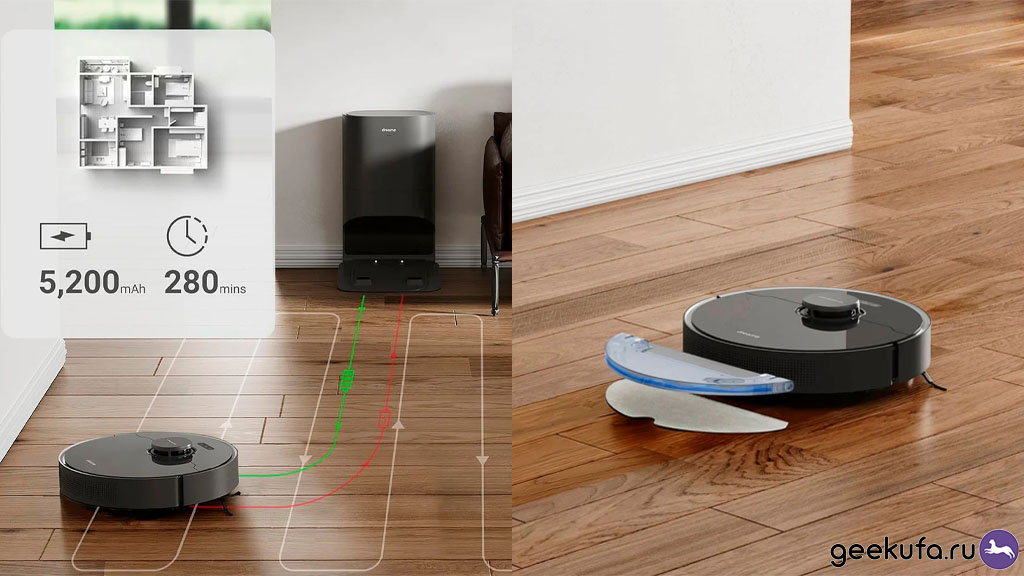 Навигация у модели реализована на высоком уровне: лазерный лидар и камера с функцией распознавания предметов. Камера позволяет распознавать предметы на полу и избегать столкновений. Автономность тоже на уровне: встроенный аккумулятор емкостью 5200 мАч обеспечивает до 280 минут работы, что позволяет очистить большие площади за один сеанс. Конечно, при включении максимальной мощности время уменьшится, но для большинства жилых помещений этого будет достаточно.